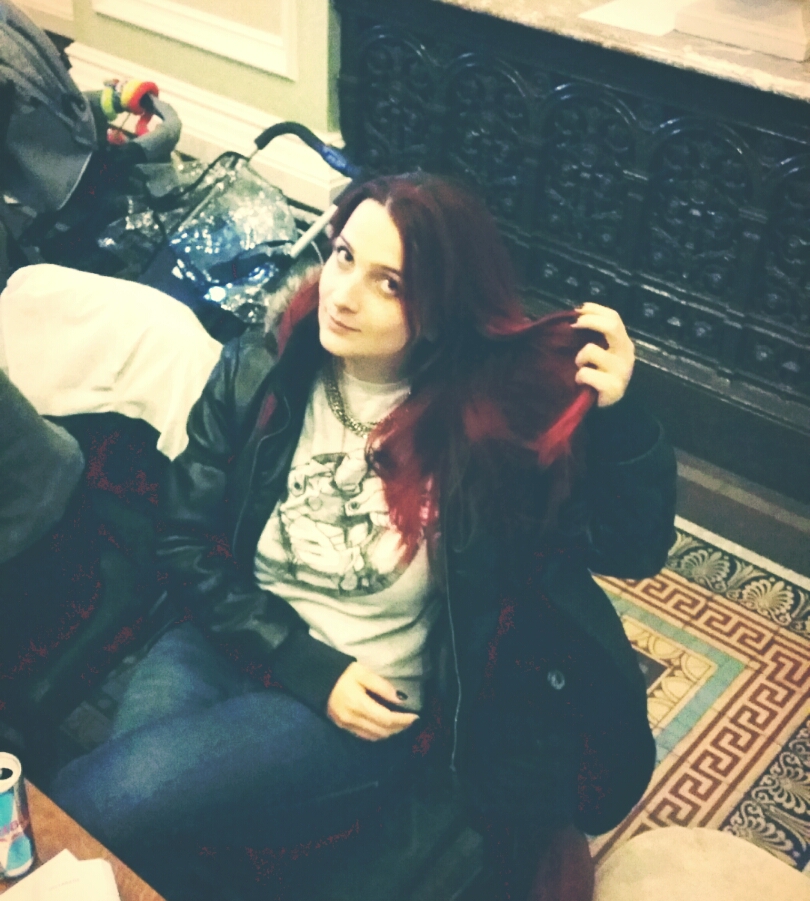 la birouas la intrare si inmanat declaratii, in primul rand am aflat de la multime ca ii fac campanie lui Ponta pentru ca sunt roscata. Colega mea, Georgiana, mi-a recomandat sa imi pun fes.